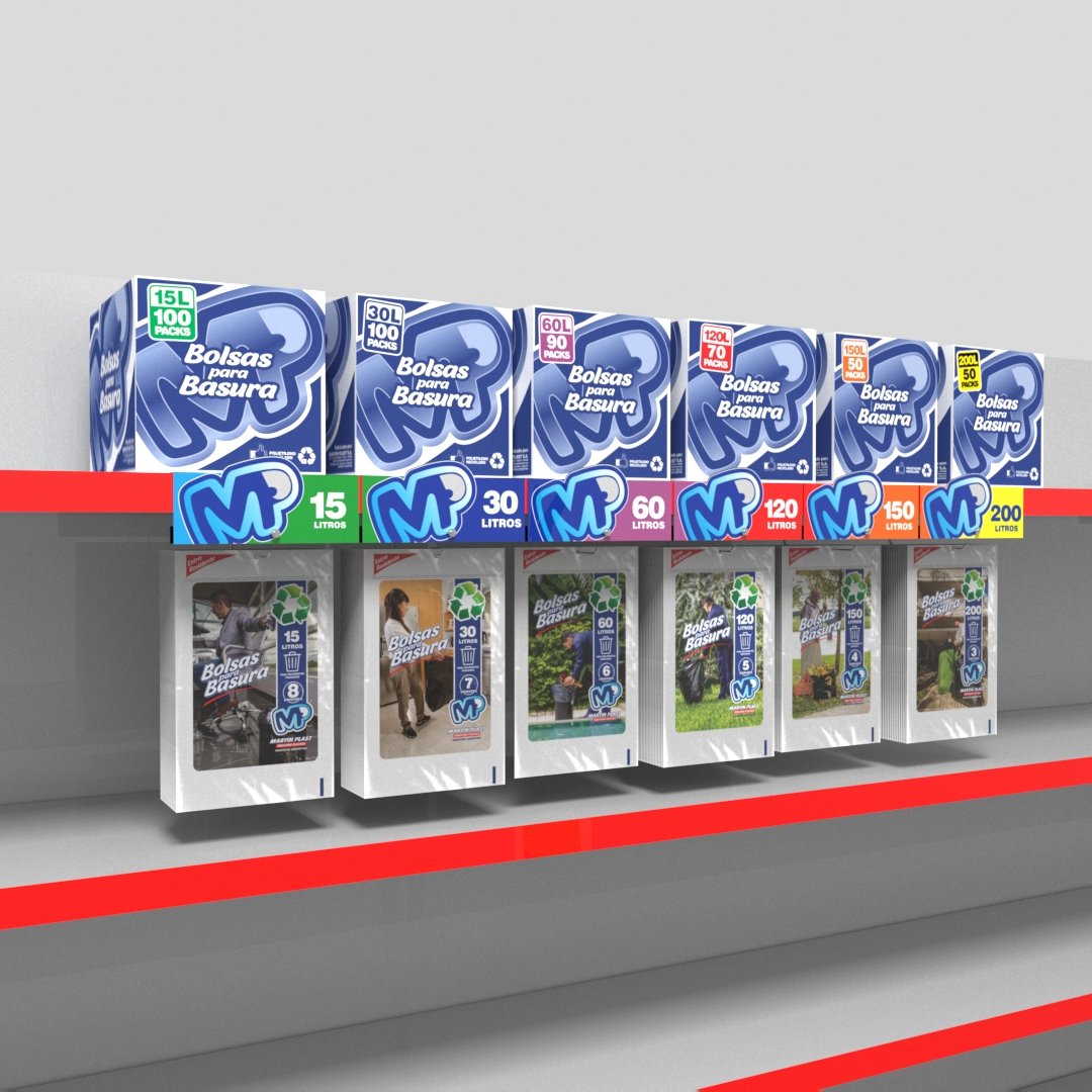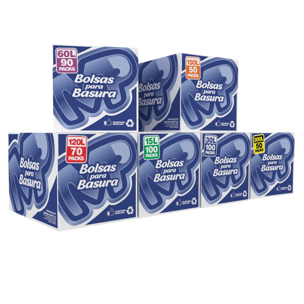 Fabricadas en polietileno reciclado, nuestras bolsas para basura están diseñadas pensando en la eficiencia y la sostenibilidad. Disponibles en formatos de caja exhibidora y blíster colgante, estas presentaciones facilitan su exposición en góndola y optimizan el espacio en tiendas y supermercados.